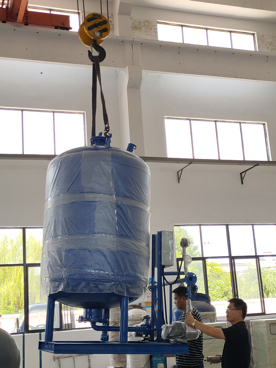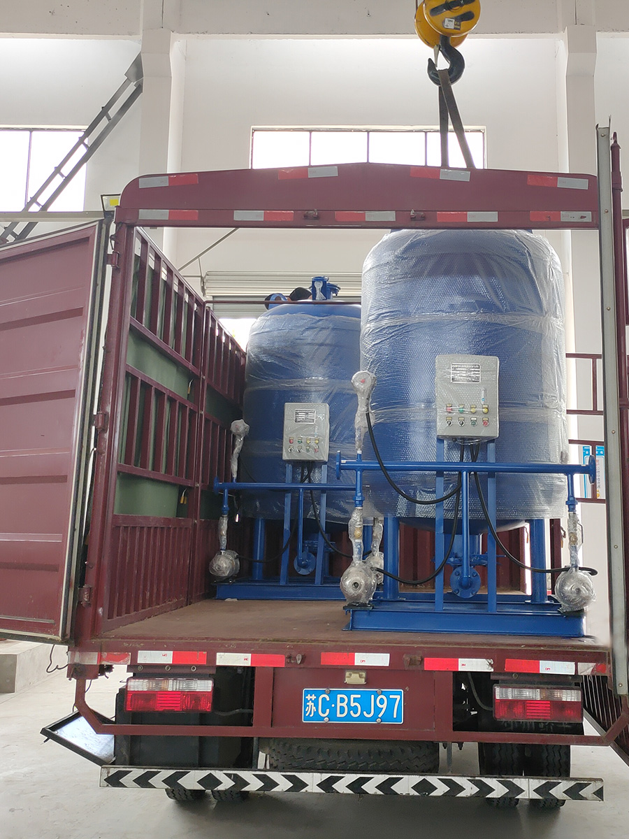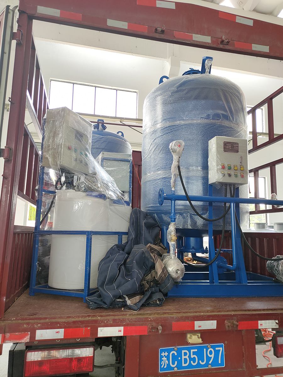 河北邢臺發貨2套定壓補水機組+2臺全自動加藥裝置+2臺旁流水處理器+2臺水箱水處理器